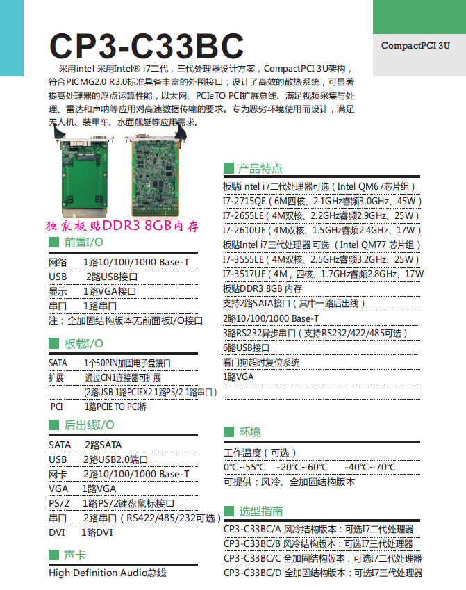 采用intel 采用Intel? i7二代,三代處理器設計方案,CompactPCI 3U架構,