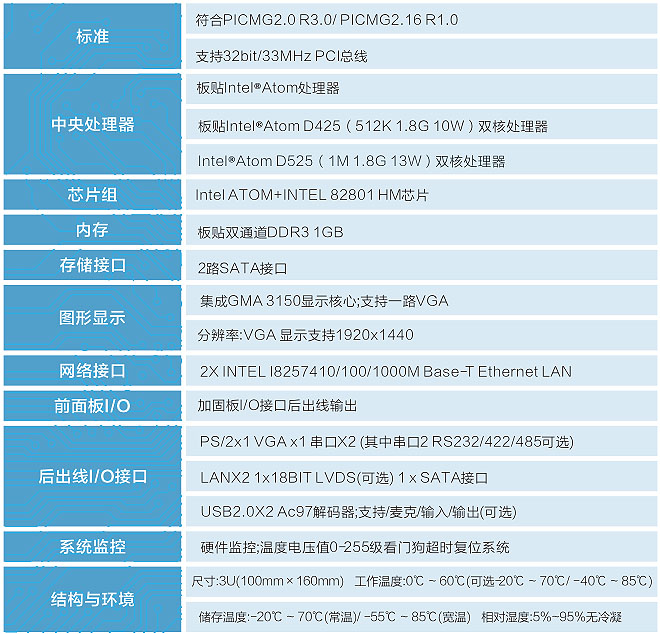 ●PICMG2.0規范板載ATOM低功耗板載CPU