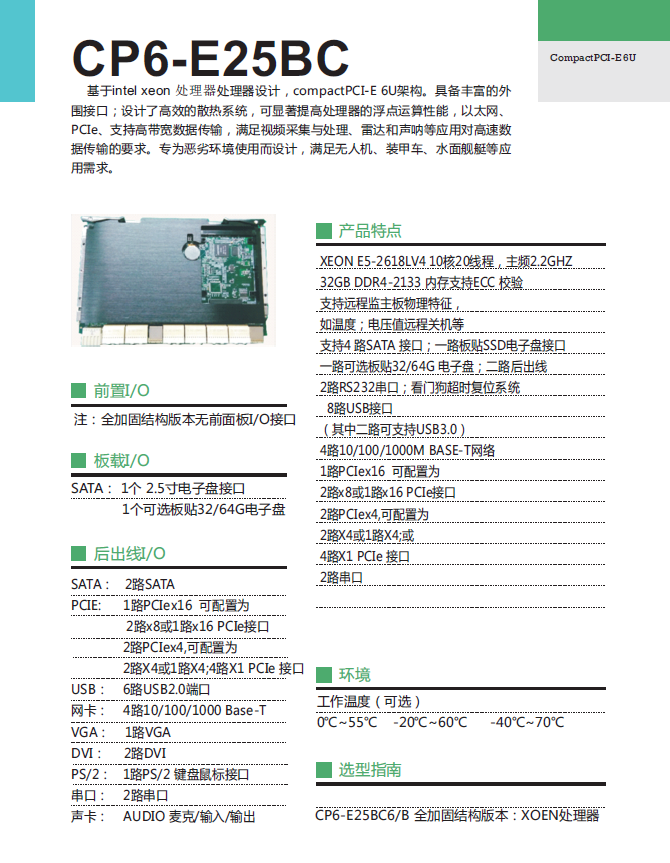 采用intel XEON處理器設計方案,compactPCI-E 6U架構,符合海軍標主板二代