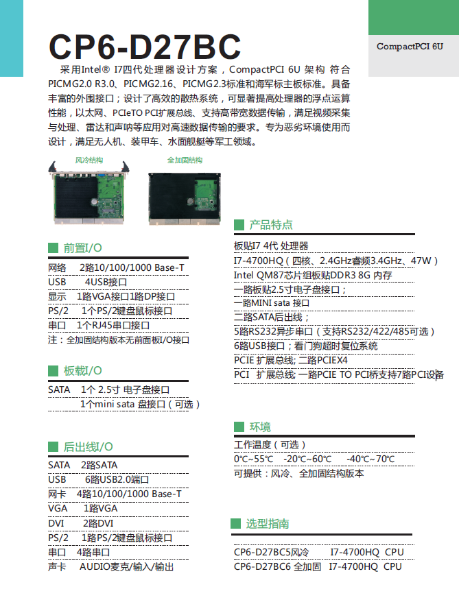 采用Intel? I7四代處理器設(shè)計方案, CompactPCI 6U 架構(gòu) 符合