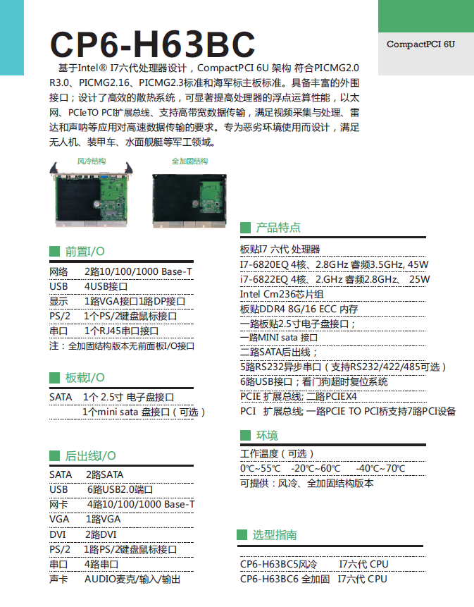 基于Intel? I7六代處理器設計,CompactPCI 6U 架構 符合PICMG2.0