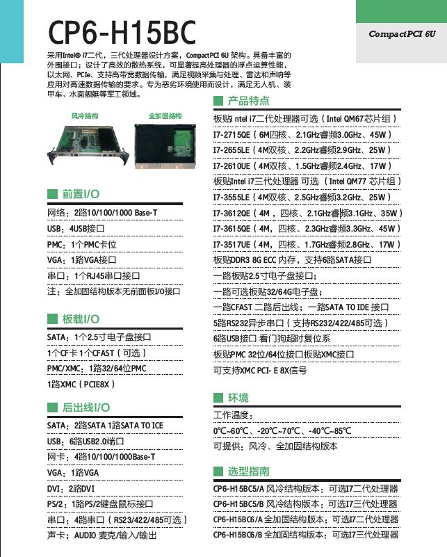 CP6-H15BC是一款基于Intel Core QM67芯片組架構刀片CPCI板;