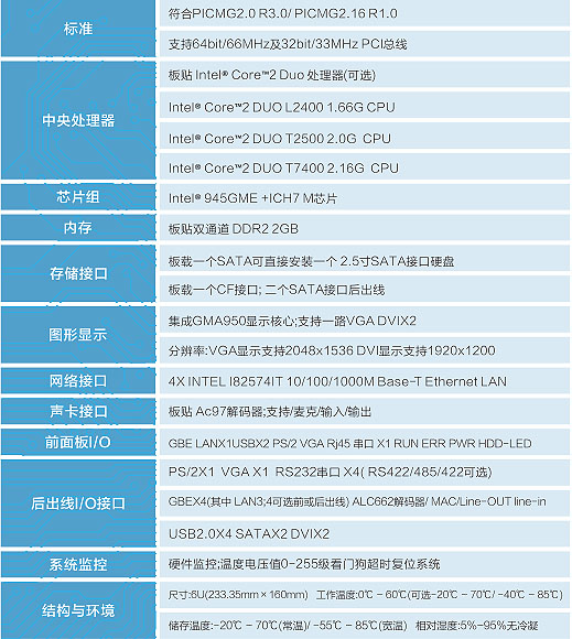 CP6-H6BC5是一款基于Intel 945GME+ICH7M芯片組架構刀片加固CPCI板;