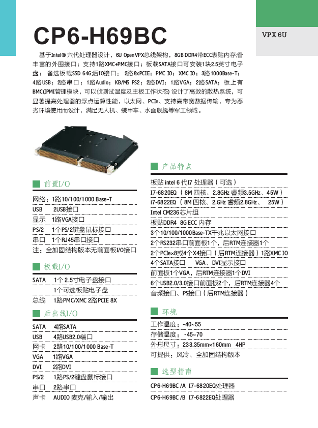 2個PCIe×8或4個X4接口(后RTM連接器)1路XMC IO