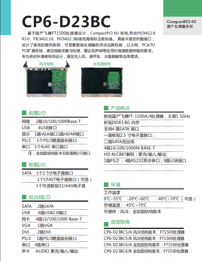 基于國(guó)產(chǎn)飛騰FT1500處理器設(shè)計(jì),CompactPCI 6U 架構(gòu),符合PICMG2.0